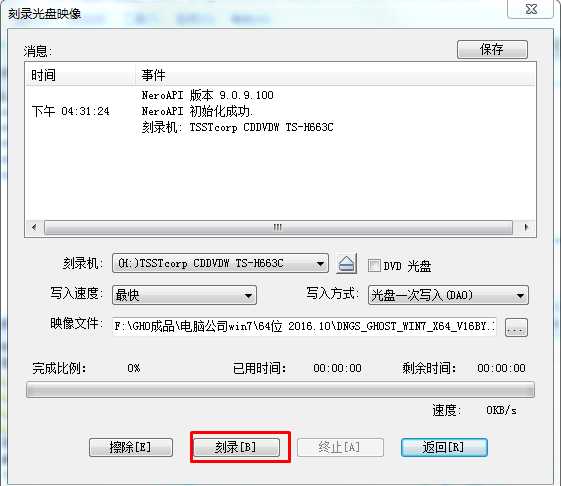 5、放入“空白刻录光盘”然后点击【刻录】按钮,即可开始刻录;