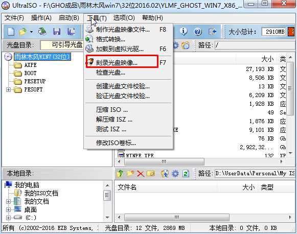 一、雨林木风win7旗舰版32位刻录方法