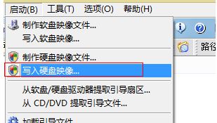 2、点击 文件 -- 写入硬盘镜像 选择启动选项,选择写入硬盘镜像。如图: