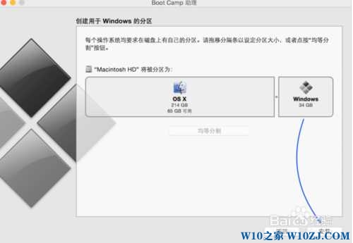6、U 盘安装盘制作完成以后,会进入 Mac 硬盘的分割界面。在这里可以手动调整会 Windows 系统的硬盘空间。建议分配空间不少于 30G。