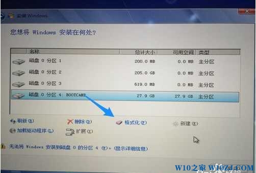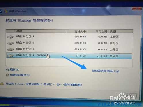 8、接下来在安装系统分区界面里,选择bootcamp分区并点击“驱动器高级”选项,如图所示