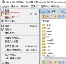 4、运行软碟通,点击软件的文件,打开 选择刚才下载的系统;