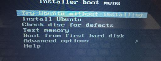 2、选择第一选项 Try Ubuntu without installing 或 第二选项 Install Ubuntu 直接安装,如图: