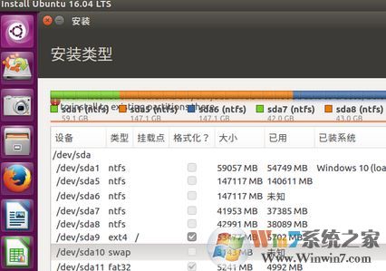 6、在本文中小编选择安装在 sda9,使用ext4格式,如图: