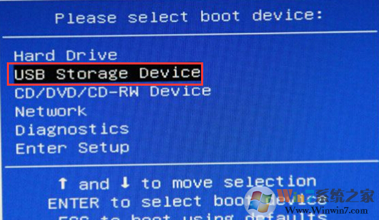 4、保存设置后自动重启进入LOGO画面时,一直按重启按F12/F7快捷键,在启动菜单中选择USB启动,如下图所示;