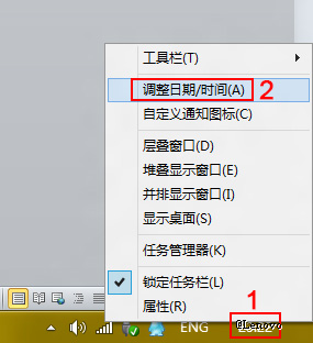 (1)将鼠标移动到桌面右下角的时间区域并点击右键,再弹出菜单中选择调整日期/时间(A)。如下图所示: