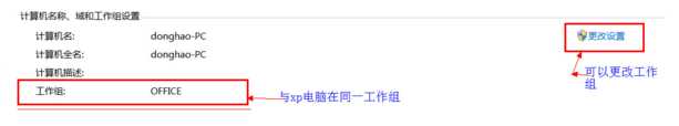 在桌面---计算机(右键)---属性,点击“更改设置”,自己将Win7系统和共享打印机的电脑调整为同一工作组。