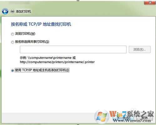 如果没有搜索到打印机,我们就要选择“我需要的打印机不在此列表中”,然后选择使用“TCP/IP 地址或主机名添加打印机”。然后点“下一步”: