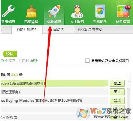 1、如果要打开电脑时候关闭开机启动,可以安装下面的方法操作:打开360安全卫士,然后选中优化加速