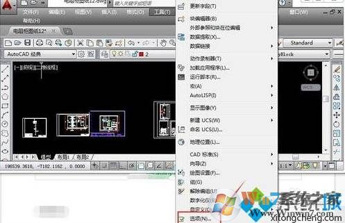 1、在CAD菜单工具中选择选项的下拉列表;
