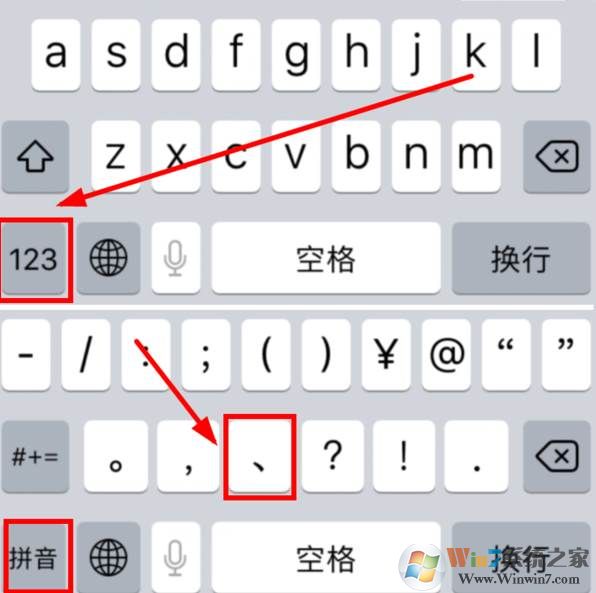 3、全键盘的输入方式为,点“123”那个格子,即可显示出顿号。