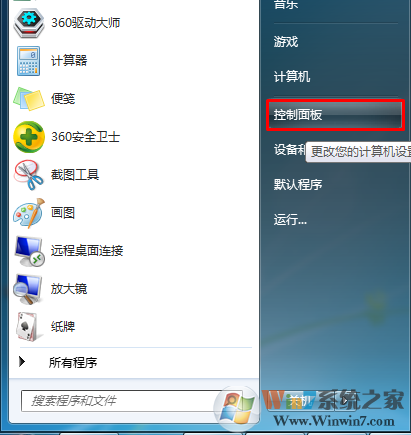 1.点击计算机左下角开始菜单,找到控制面板,点击打开
