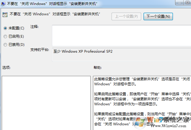 8.选择 不要在“关闭Windows”对话框显示“安装更新并关机”并双击