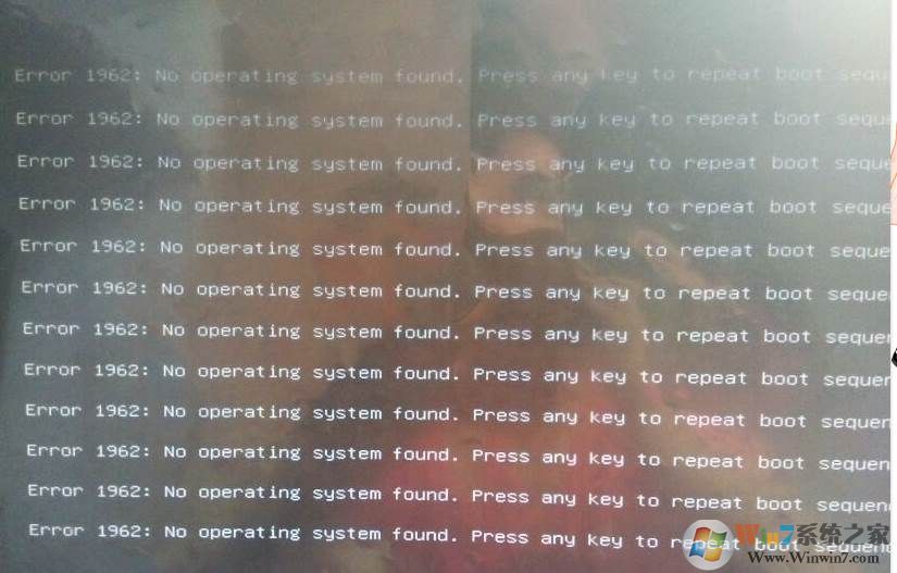 最近有用户反馈电脑开不了机,出现一大片的英文,Error 1962: No operating system found,press any key to repeat boot sequence 的提示,要怎么解决呢?