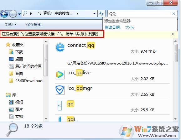 搜索速度很快,这得意于Win7的搜索索引功能。