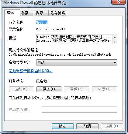 到这里就把Win7系统的Windows Firewall 服务(防火墙服务)打开了。