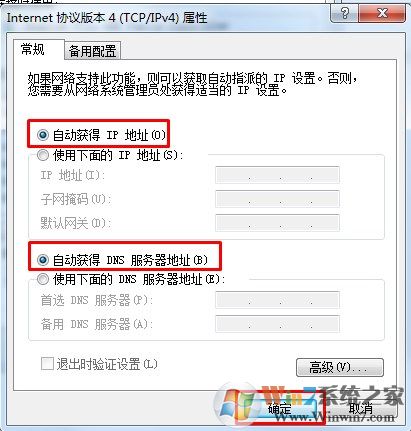 5、如果本来本来是手动输入ip地址的,就选择为自动获取