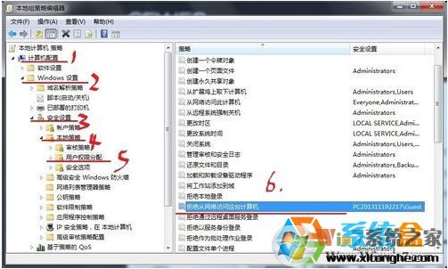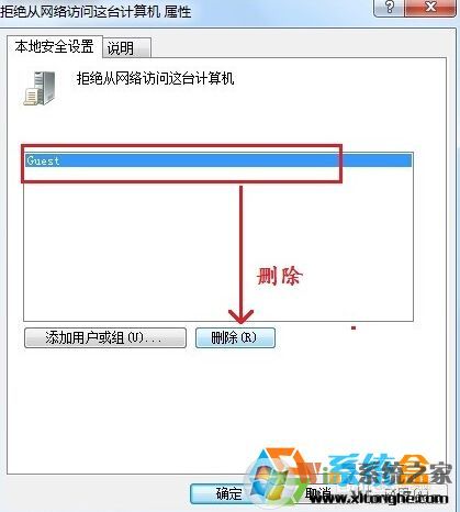 步骤三、双击“拒绝从网络访问该台计算机”删除其中的 Guest用户或组,然后确定。