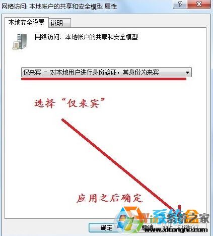 步骤五、双击该项,然后设置访问模式为”仅来宾-对本地用户进行身份验证,其身份为来宾,应用保存;