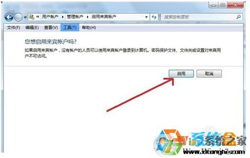 步骤七、最后我们还要查看GUEST帐户是否开启,没有开启的话则开启;