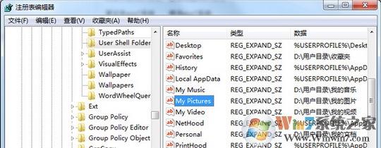 3、在选择切换到My Picture键值窗口,然后在输入键值%USERPROFILE%\Pictures,把图片的路径保存到所对应的路径即可。