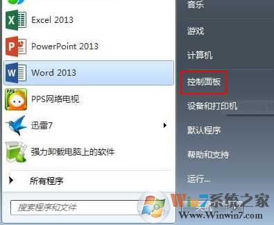 1、单击桌面左下角开始按钮,从弹出的菜单中,选择控制面板。