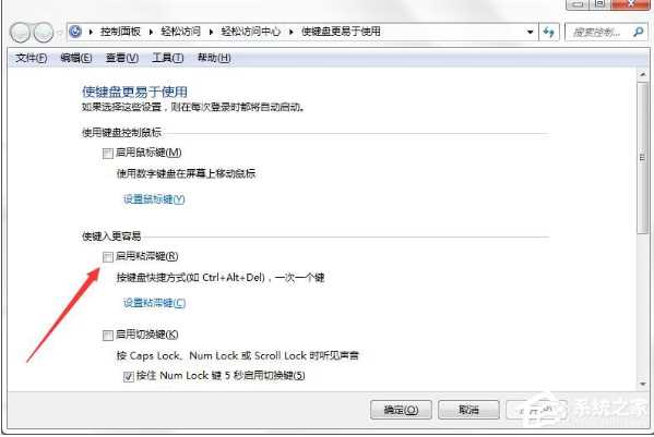 3、你还得勾去连续五次shift键时启用粘滞键;