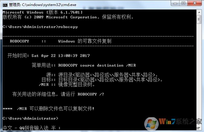 3、在命令行窗口中输入命令robocopy可以查看其相应参数说明;
