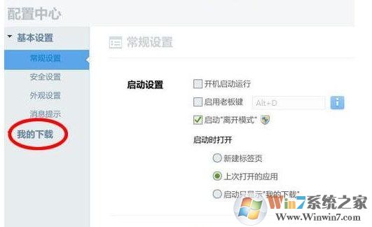 第一步,进入迅雷的配置中心。打开迅雷,点击下载界面上方的配置中心,进入迅雷的配置界面,这时选择我的下载。