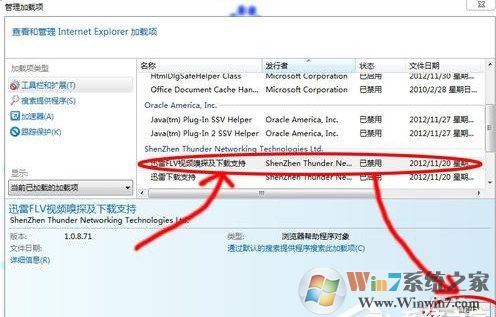 第四步,启用迅雷嗅探和下载支持。进入加载项界面后,找到迅雷的相关选项,如果你的迅雷不能自动监视下载的话一定是关闭了相关的插件,找到迅雷下载支持和迅雷视频嗅探后启用即可。这时再去下载资源时迅雷就会主动地帮你下载了