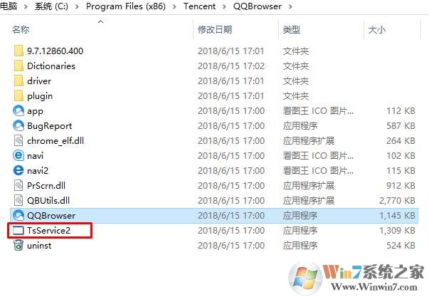 1、通过分析发现TsQBservice.exe进程是属于QQ浏览器的相关进程;文件目录为QQ浏览器安装文件夹