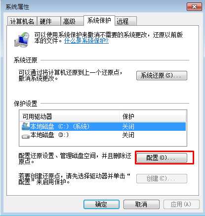 2:点击“系统保护”,打开“系统属性”界面,如图1所示: