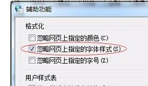3、之后在弹出的框中勾选“忽略网页上指定的字体样式”,点击确定。