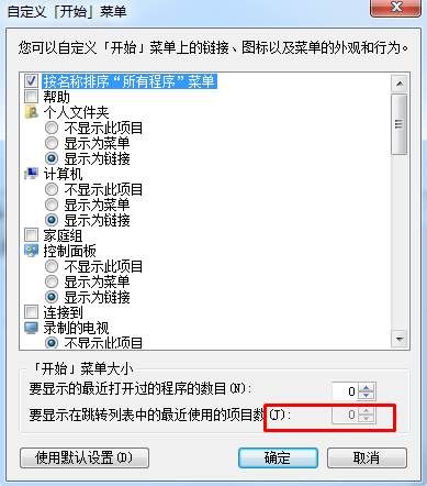 Win7显示在跳转列表中的最近使用的项目数改不了解决方法