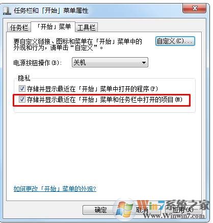 1、回到开始菜单设置页面,然后把 :储存并显示在最近在【开始】菜单和任务栏中打开的项目选项打勾;