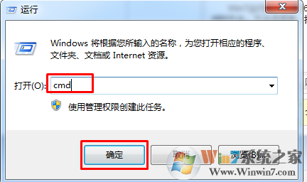 1、我们可以进行完全注册系统dll文件的操作,在运行中输入CMD,点击确定或按回车键,打开管理员命令提示符窗口;