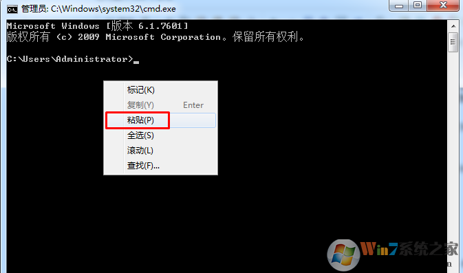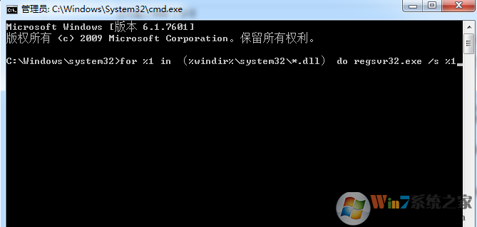 2、复制右键粘贴命令:for %1 in (%windir%\system32\*.dll) do regsvr32.exe /s %1到命令提示符中;