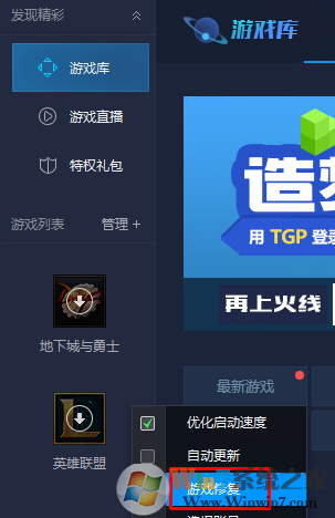 一、安装腾讯游戏平台tgp,使用软件中的游戏修复进行修复试试,
