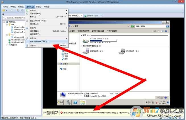 14、最后建议安装一下VMware Tools工具,如下图:安装后虚拟机中的XP才能玩游戏什么的,性能也会更好。