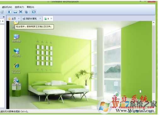 13、在这里你可能会发现虚拟系统界面怎么那么小,打开我的电脑都把整个桌面给挡住了,设置很简单,不需要改虚拟机,在虚拟系统桌面点右键-属性-设置改成你电脑的分辨率就好了-保存设定