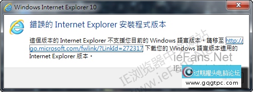 当安装与系统相应的语言版本时,提示下载的 IE10 语言版本不支持目前的 Windows 语言版本,这个是由于下载的IE10语言版本与系统的语言版本不符导致的。