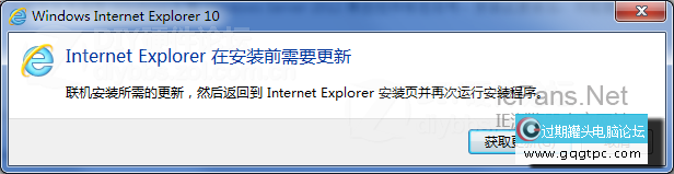 安装IE10失败错误2:Internet Explorer 在安装前需要.更新