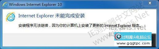 安装IE10失败错误3:计算机上安装了更新的 Internet Explorer 版本