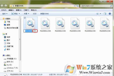 5、将所有文件复制到硬盘上,然后右键选择重命名文件。将后缀名由chk改成你要恢复的文件格式(可以使用批量改名工具,里面会有很多修改后无用的东西不用管,找到你需要的文件即可)
