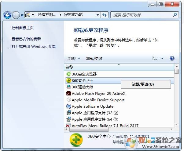 在电脑的控制面板—卸载程序中,可以找到相关杀毒软件进行卸载处理