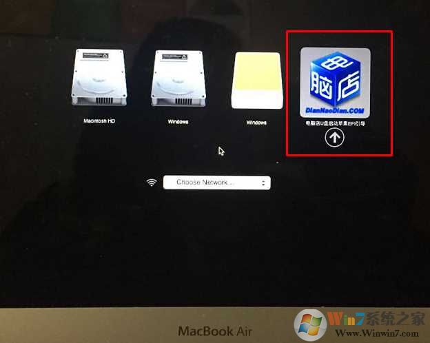 2、插入U盘,开机时听到咣的一声按住Option 键,选择U盘启动,然后进入到PE中;