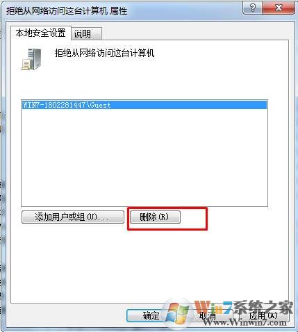 3、找到拒绝从网络访问这台计算机中,所有项目都删除掉,确定保存;