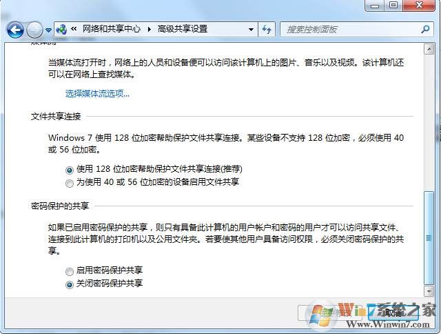 1、网络和共享中心【关闭密码保护共享】,这点相信大家都有操作,操作的跳过下一步,最可能遗漏的;