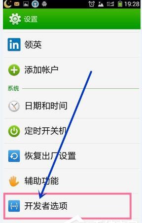 5:返回手机【设置】界面,找到【开发者选项】点击进去。