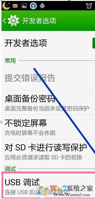 6:在【开发者选项】界面,找到【USB调试】把后面的框打对勾。如图所示!设置完之后,手机就可以重新连接到电脑上了哦!